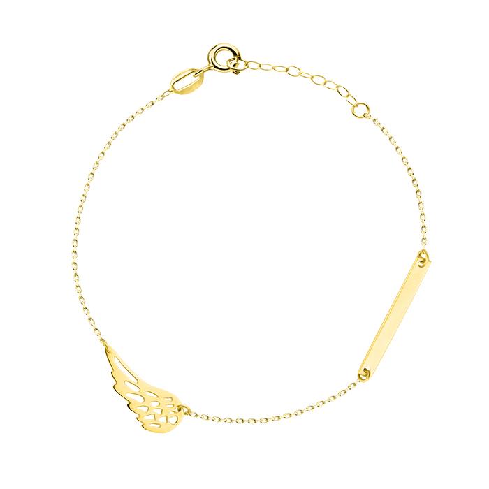 Złota bransoletka regulowana z blaszką i skrzydłem