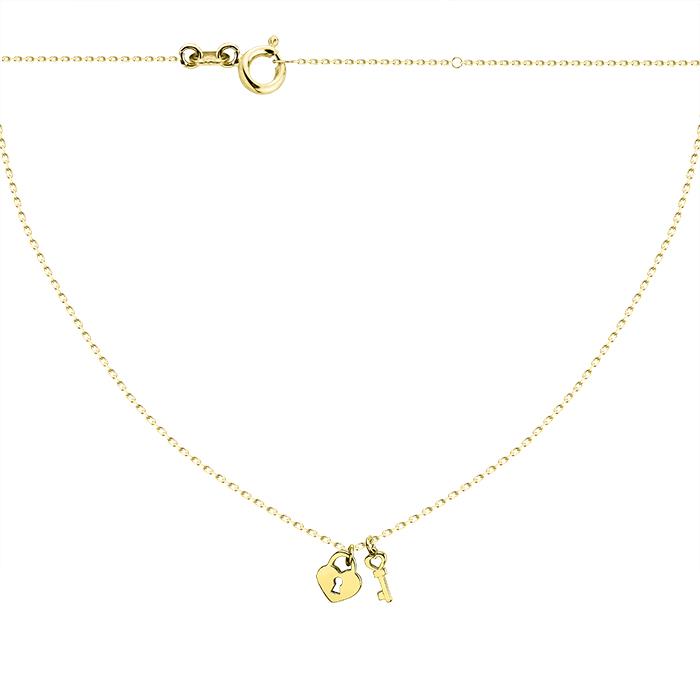 Złoty naszyjnik serce z kluczem