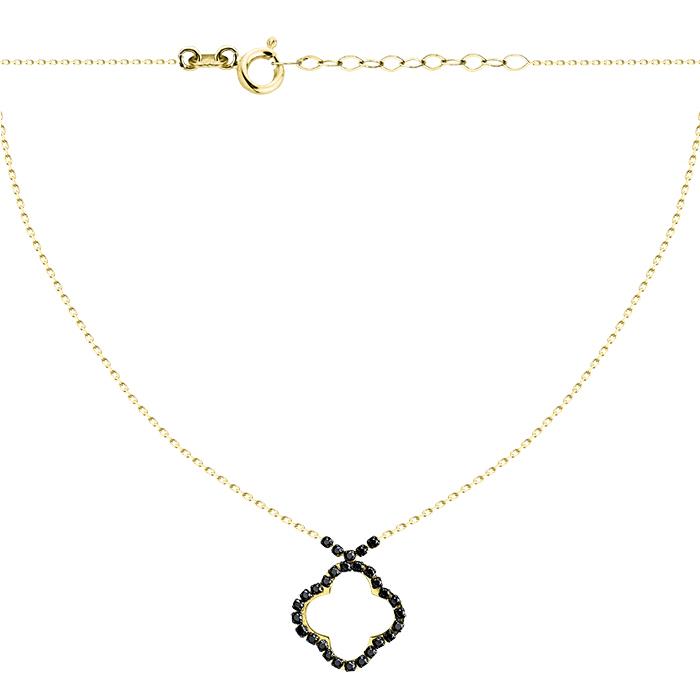 Złoty naszyjnik rodowany koniczyna czarna cyrkonia