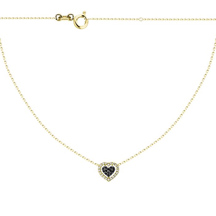 Złoty naszyjnik serce czarna cyrkonia