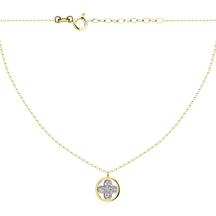 Złoty naszyjnik rodowany koniczyna z cyrkoniami
