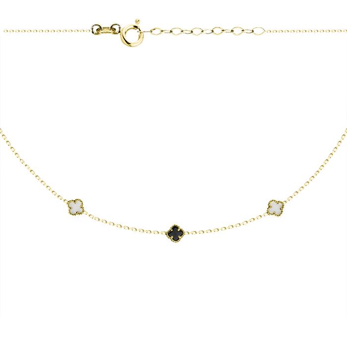 Złoty naszyjnik z czarnymi i białymi koniczynami