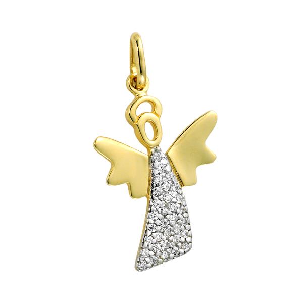 Złota zawieszka rodowana z cyrkoniami