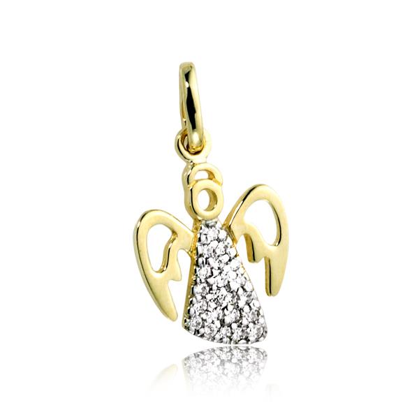 Złota zawieszka rodowana z cyrkoniami