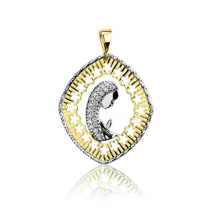 Złoty medalik rodowany z cyrkoniami
