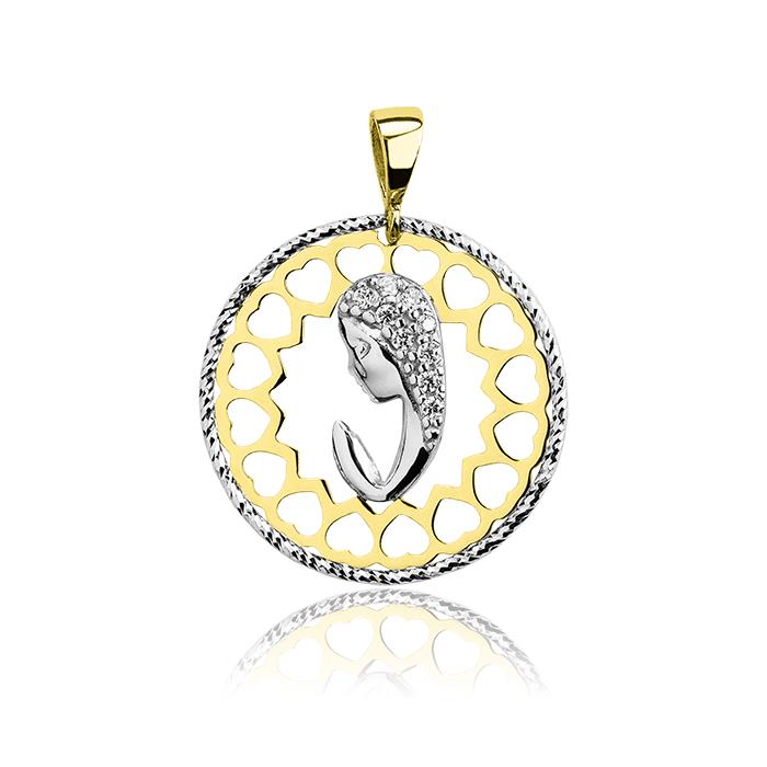 Złoty medalik rodowany z cyrkoniami