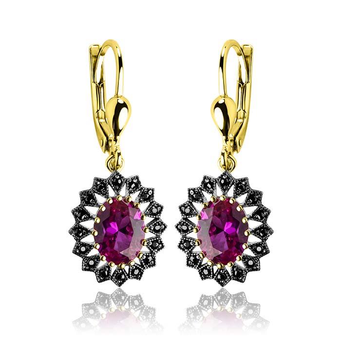 Masa: 3,40g Kamień centralny: Cyrkonia Rose Red 8x6 Kamienie boczne: czarna cyrkonia 1,10 mm