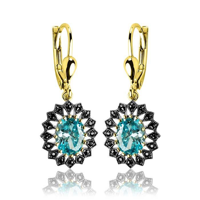 Masa: 3,40g Kamień centralny: Topaz Blue 8x6 Kamienie boczne: czarna cyrkonia 1,10 mm