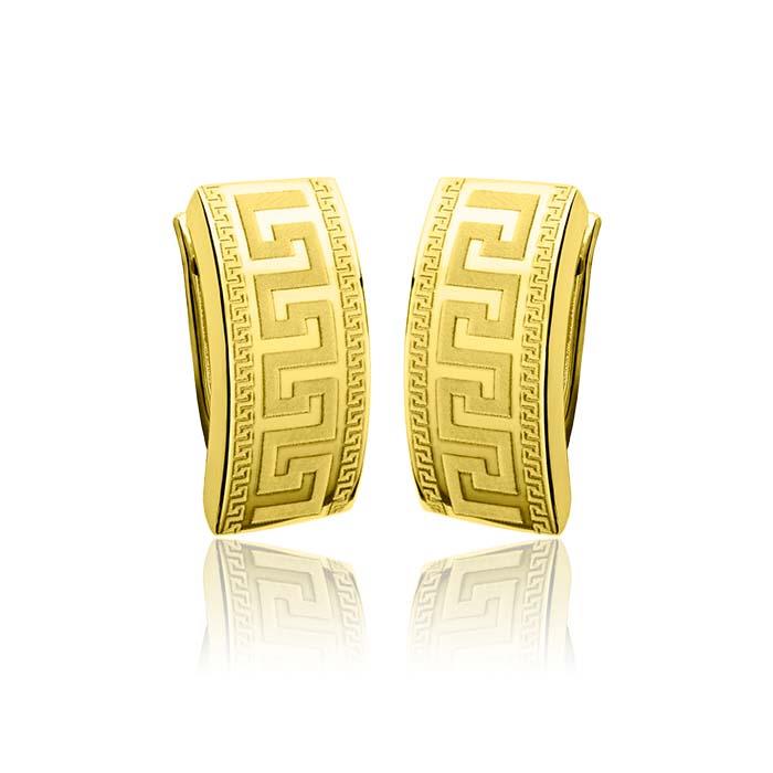 Złote kolczyki rynienki z greckim wzorem