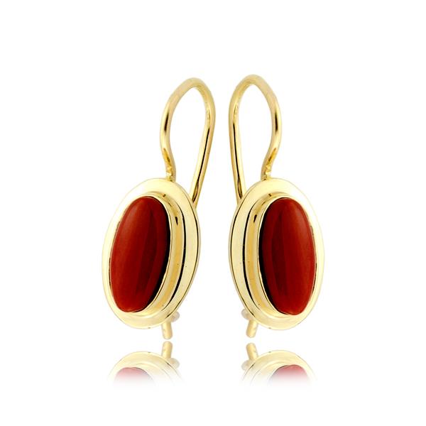 Złote kolczyki na biglu z koralem 12x7