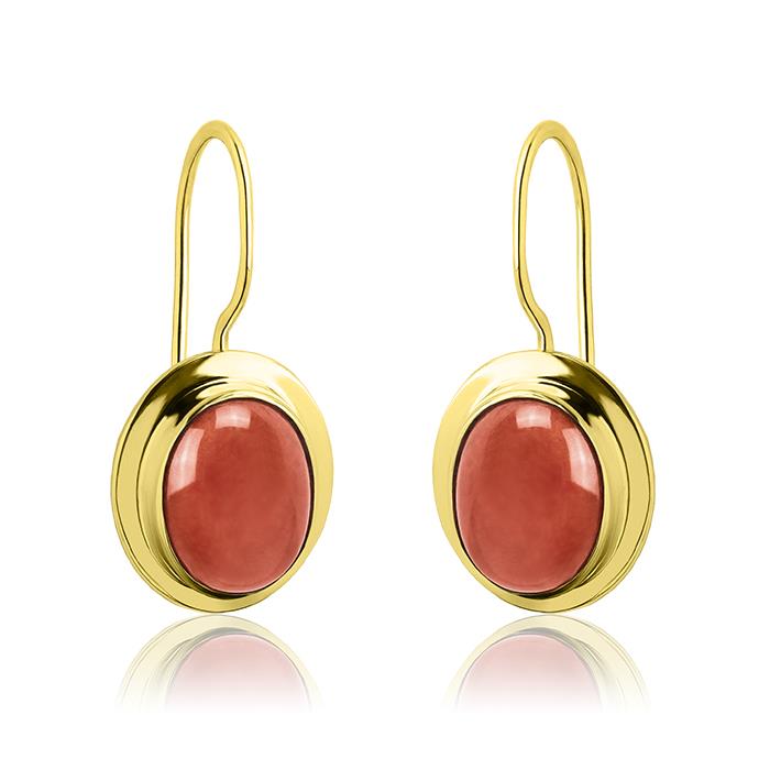 Złote kolczyki na biglu z koralem 9x7mm