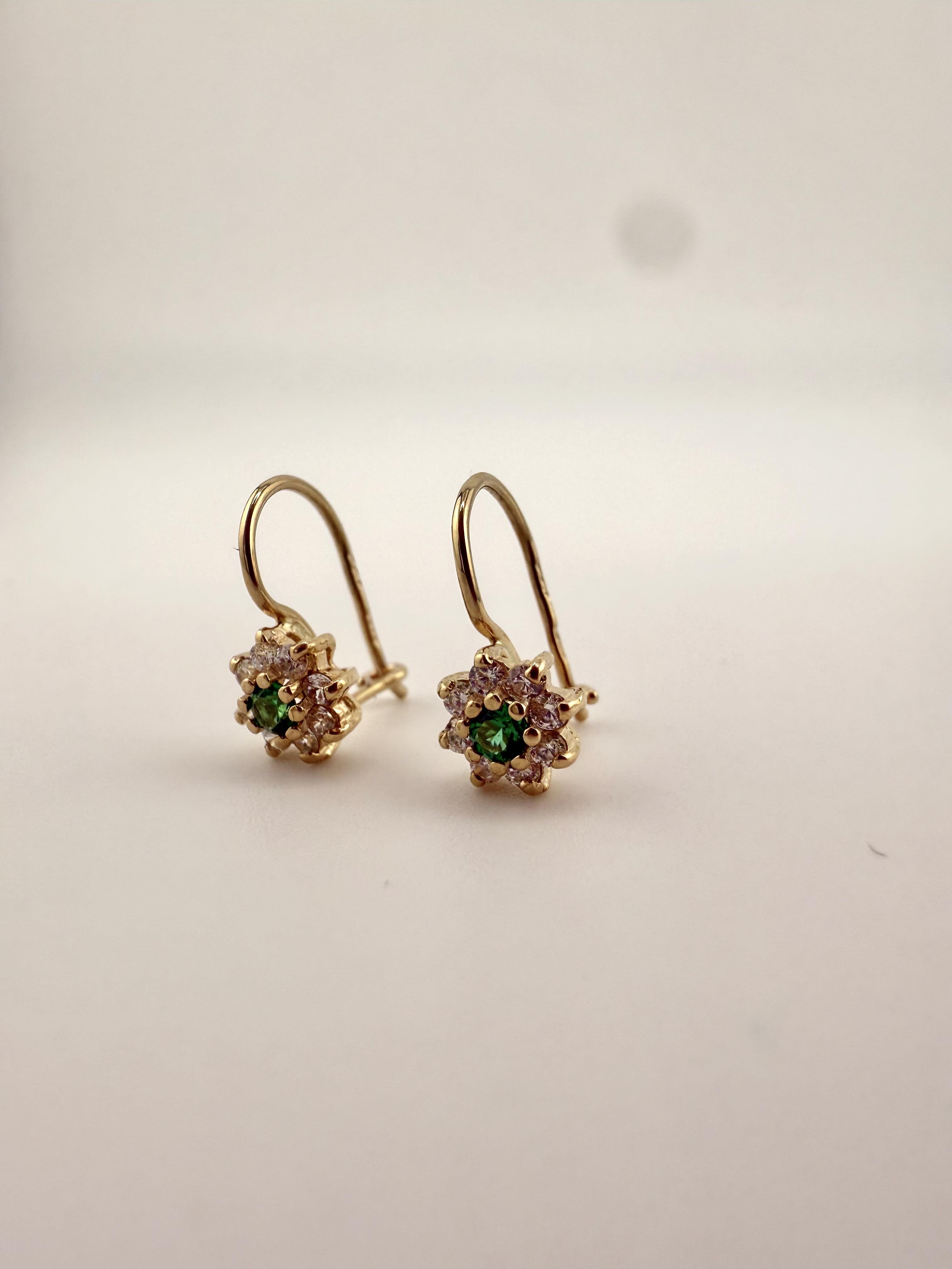 Złote kolczyki na biglu z szmaragdem syntetycznym