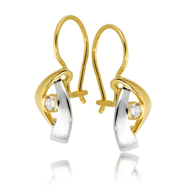Złote kolczyki rodowane z cyrkoniami