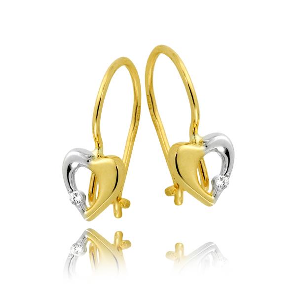 Złote kolczyki rodowane serce z cyrkonią