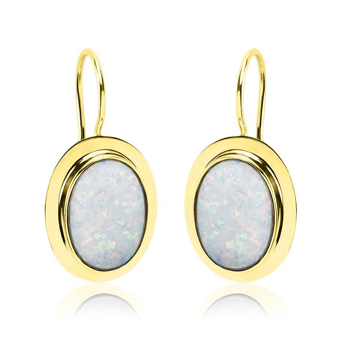 Złote kolczyki na biglu z bursztynem 14x10mm