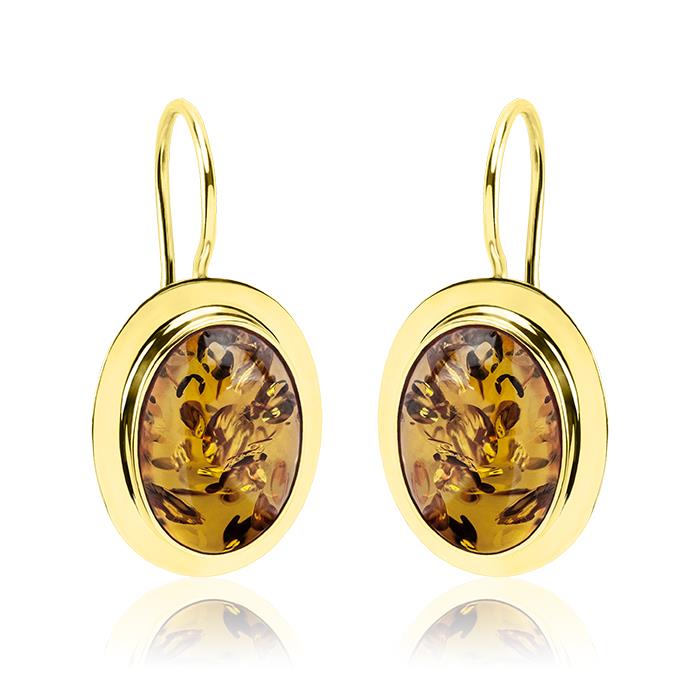Złote kolczyki na biglu z bursztynem 14x10mm