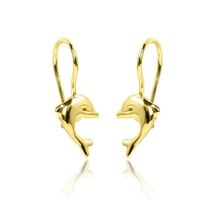 Złote kolczyki delfinki
