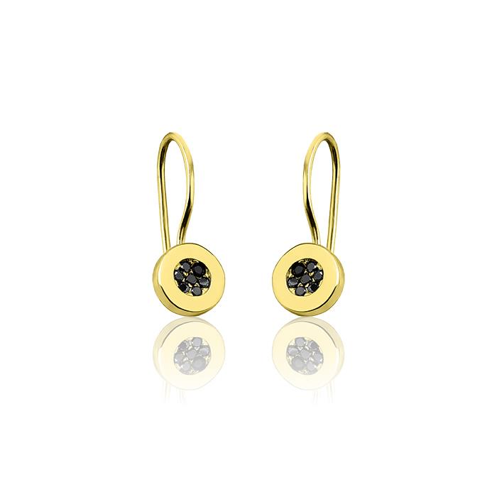 Złote kolczyki na biglu z czarną cyrkonią