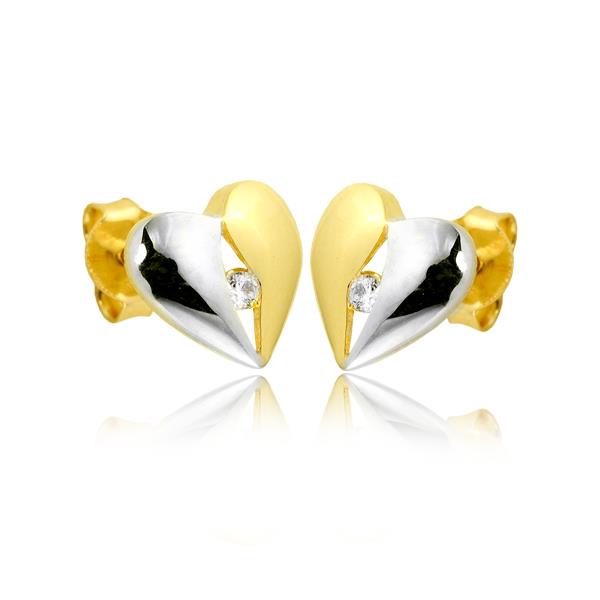 Złote kolczyki rodowane serce z cyrkoniami