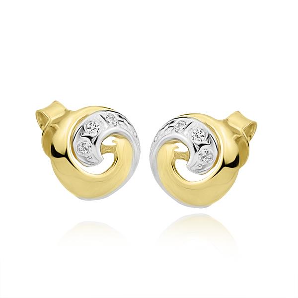 Złote kolczyki rodowane z cyrkoniami