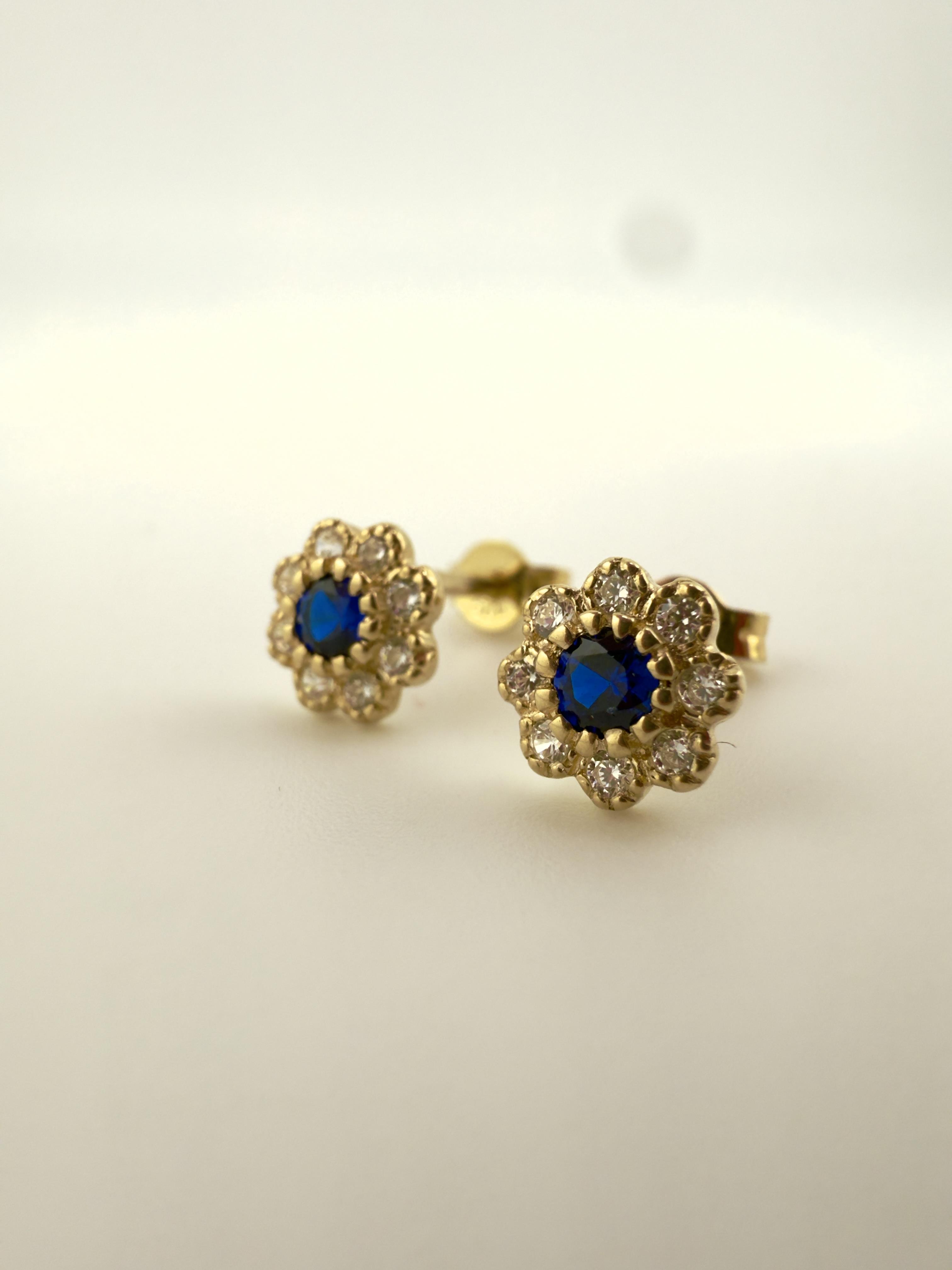 Złote kolczyki na sztyfcie z szafirem synetycznym