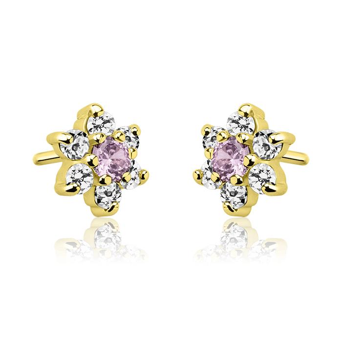 Złote kolczyki z ametystem i cyrkoniami