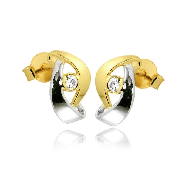 Złote kolczyki rodowane z cyrkoniami