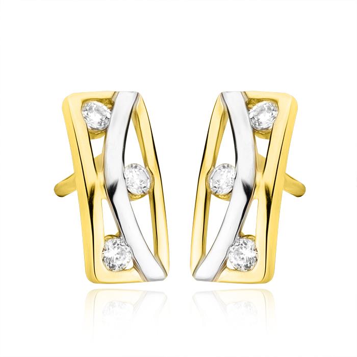 Złote kolczyki rodowane z cyrkonią