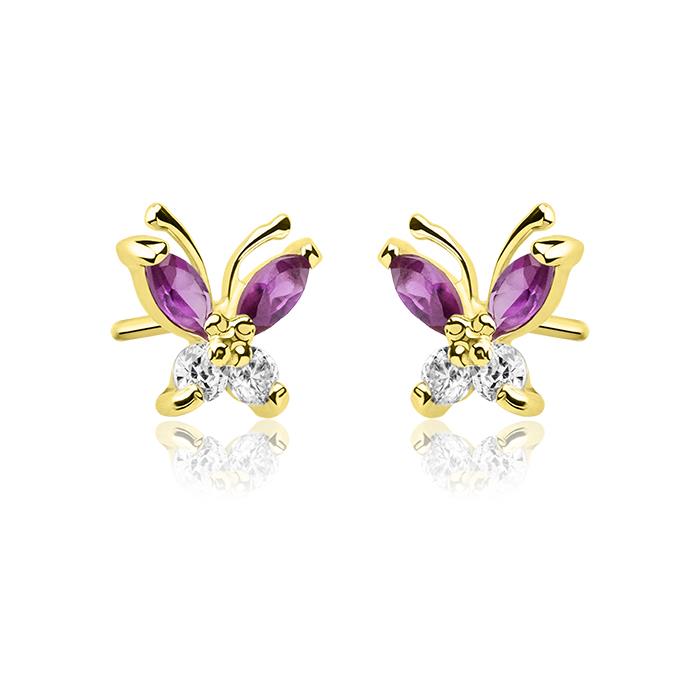 Złoty pierścionek motyl z kolorowymi cyrkoniami