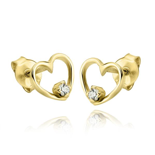Złote kolczyki serce z cyrkonią