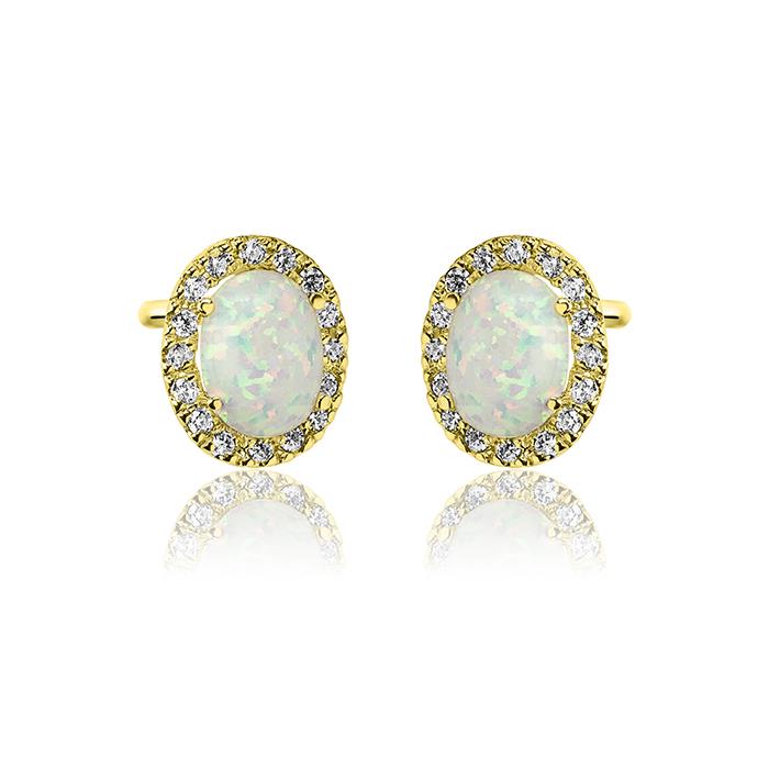 Złote kolczyki z opalem i cyrkoniami