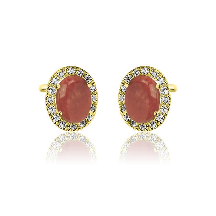 Złote kolczyki z koralem i cyrkoniami