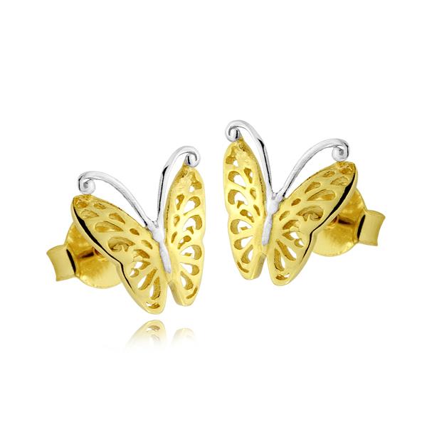 Złote kolczyki rodowane motyl