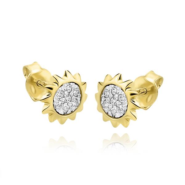 Złote kolczyki rodowane słońce z cyrkonią