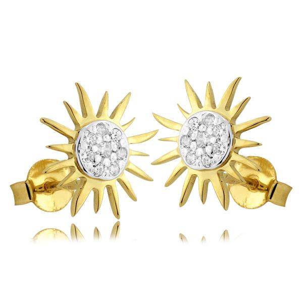 Złote kolczyki rodowane słońce z cyrkonią