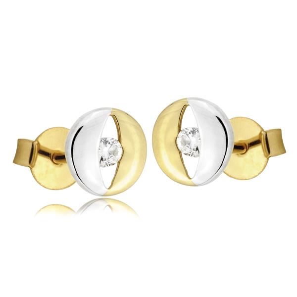 Złote kolczyki rodowane z cyrkonią