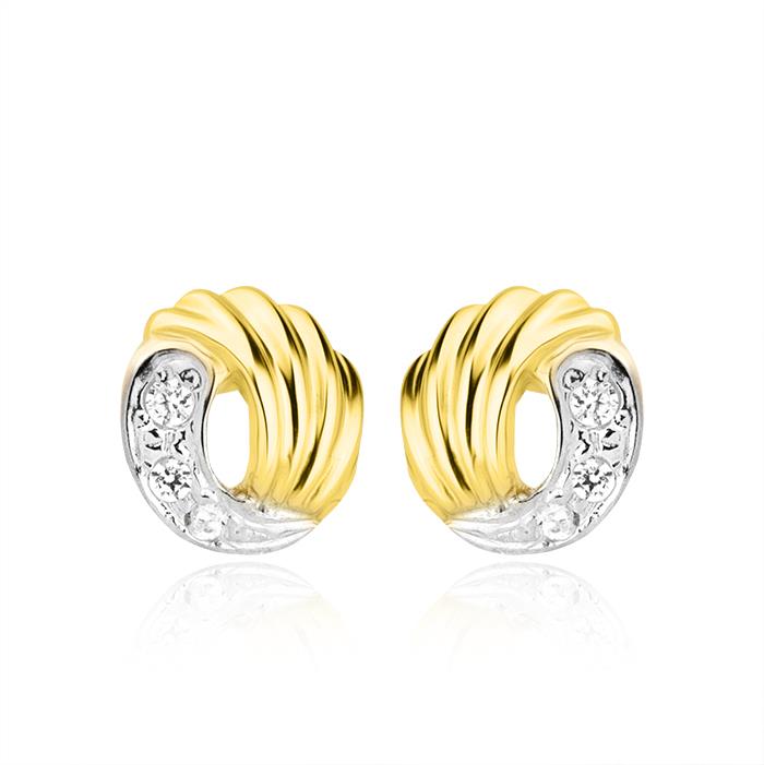Złote kolczyki rodowane z cyrkonią