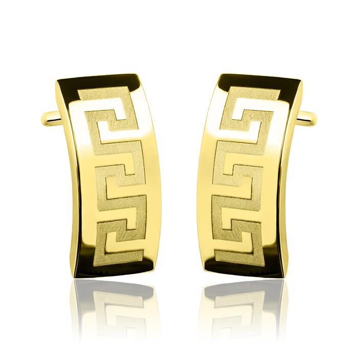 Złote kolczyki rynienki z greckim wzorem