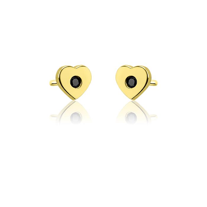Złote kolczyki serce z czarną cyrkonią
