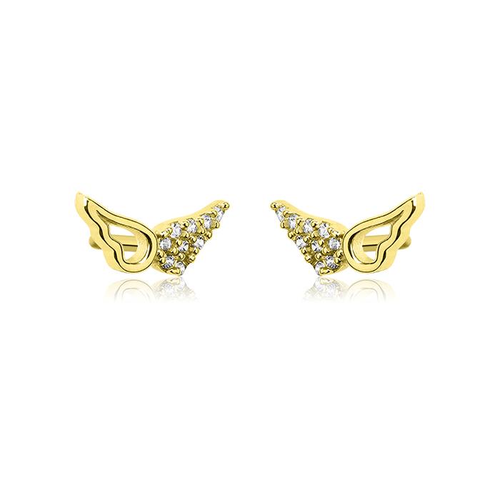 Złote kolczyki rodowane skrzydła z cyrkoniami