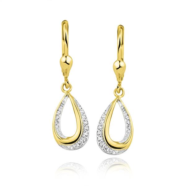 Złote kolczyki rodowane z cyrkoniami