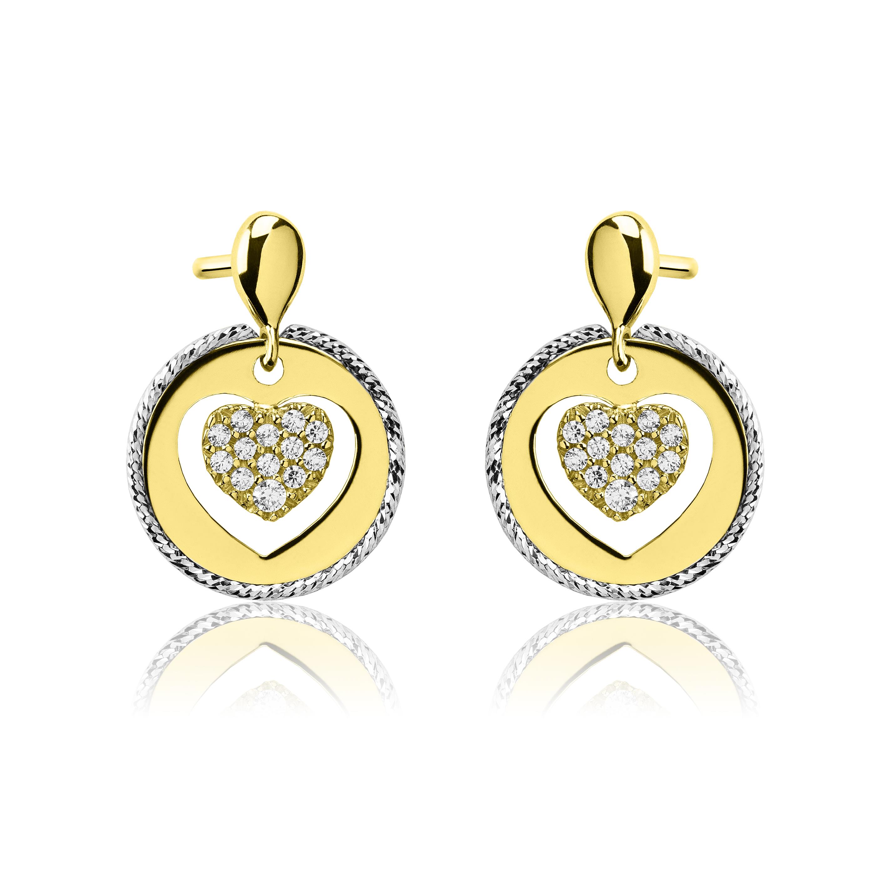 Złote kolczyki serce z cyrkoniami łączone złoto