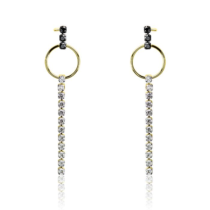 Złote kolczyki wiszące koła z czarną cyrkonią