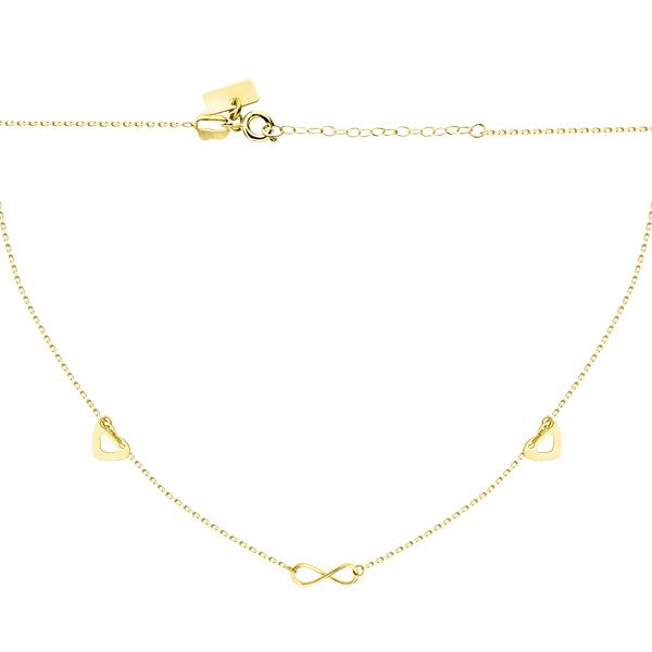Złoty naszyjnik z sercami i nieskończonością