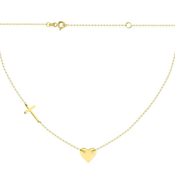 Złoty naszyjnik serce z poprzecznym krzyżykiem