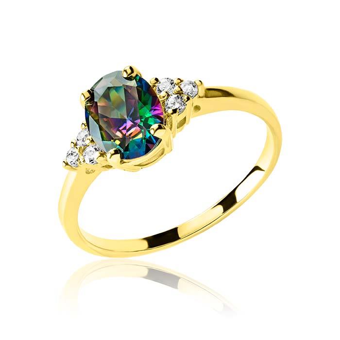 Złoty pierścionek cyrkonia multikolor