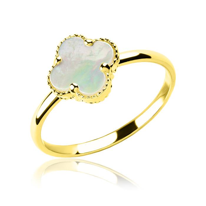 Złoty pierścionek z masą perłową