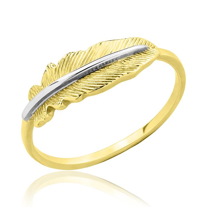 Złoty pierścionek rodowane piórko