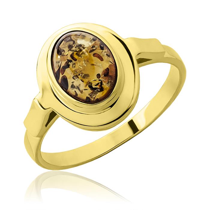 Złote kolczyki na biglu z bursztynem 8x6mm
