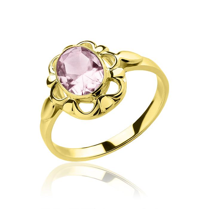 Złoty pierścionek z różową cyrkonią 8x6